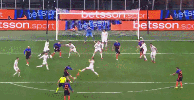 第45分钟,皮奥禁区头球破门,国米连追三球3-2反超比萨